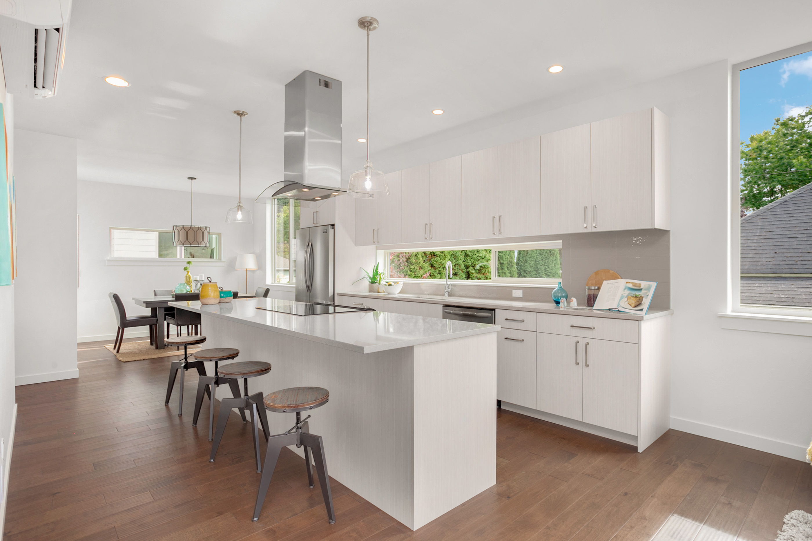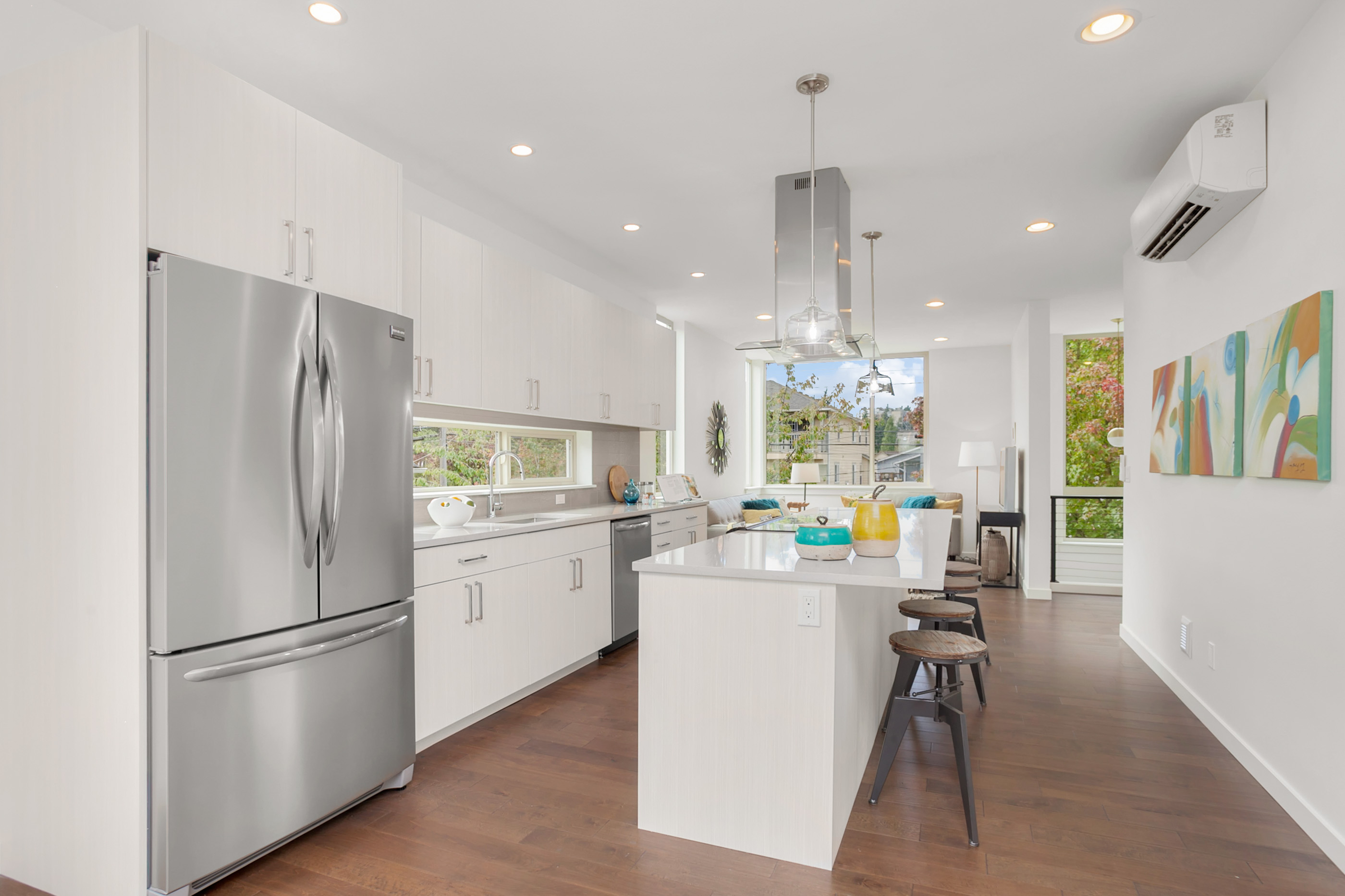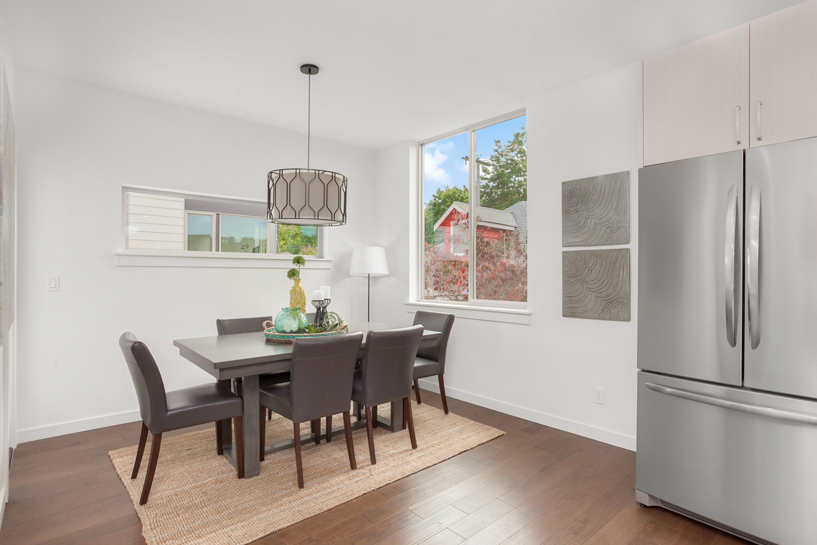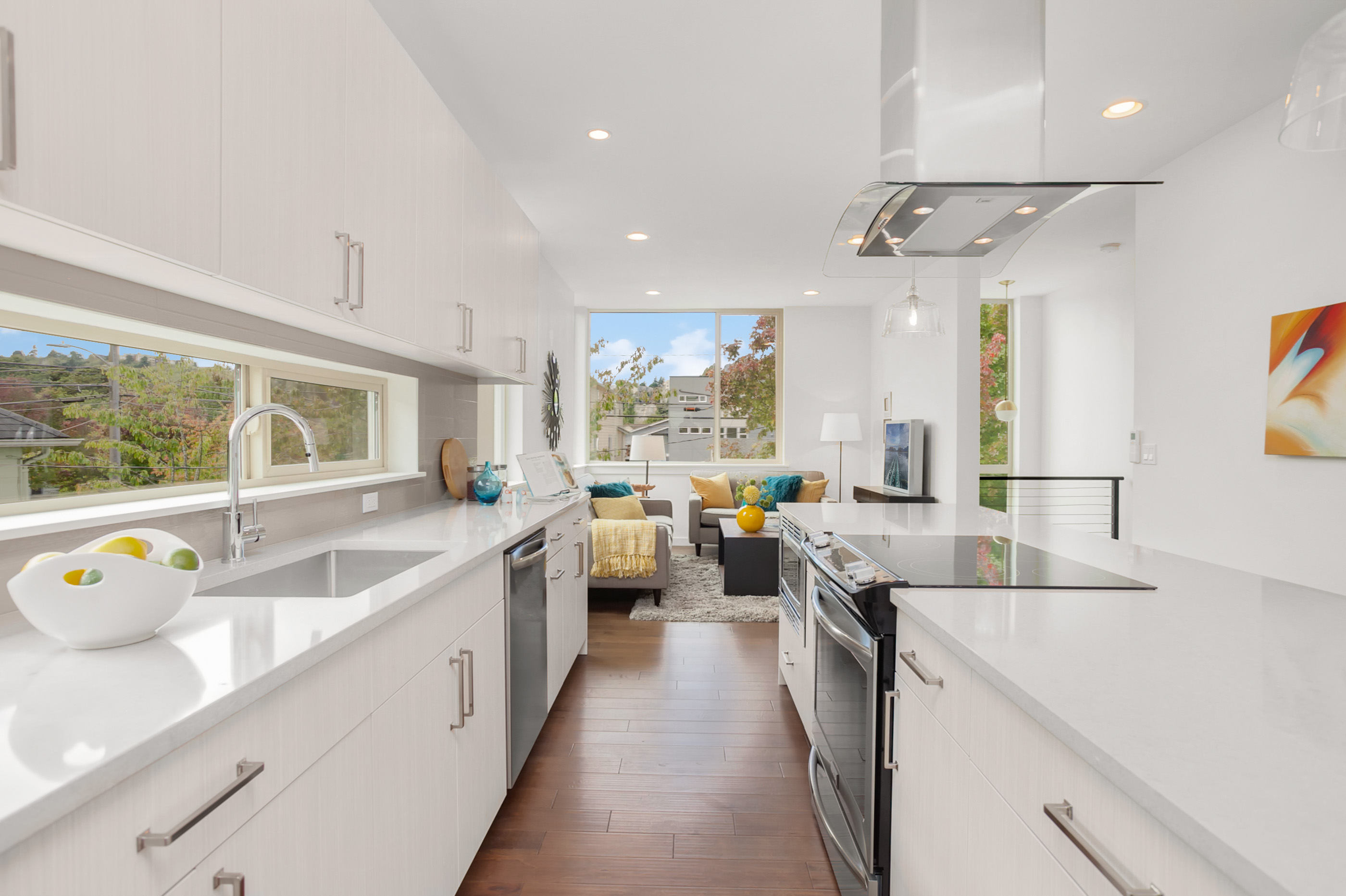 Gorgeous new 3-bedroom home featuring open, light filled spaces and exceptional modern craftsmanship. One of three new homes on a quiet street, walking distance to neighborhood parks & restaurants. Large & finely appointed kitchen opens to the living room, dining room & deck, perfect for entertaining. 2 bedrooms up including a luxurious en-suite master plus an additional full bath. Spacious rooftop deck with expansive views. Designer fixtures, high-efficiency heating & cooling & 1 car garage.